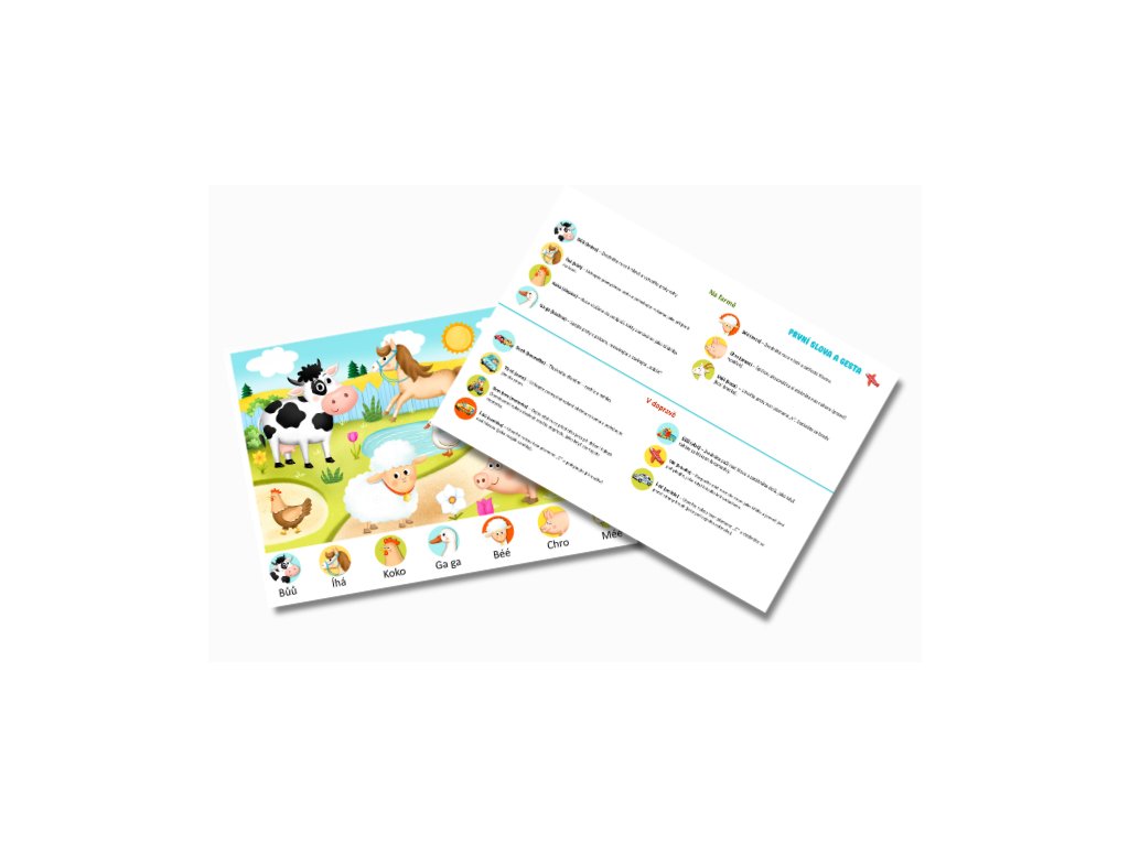 Tento materiál je určen pro děti, které vstupují do světa prvních slov. Podporuje přirozený rozvoj komunikace hravou a citlivou formou. Materiál plně respektuje vývoj dítěte – vychází z faktu, že v raném období gesta přirozeně předcházejí mluvené řeči a tvoří důležitý most k prvním slovům.